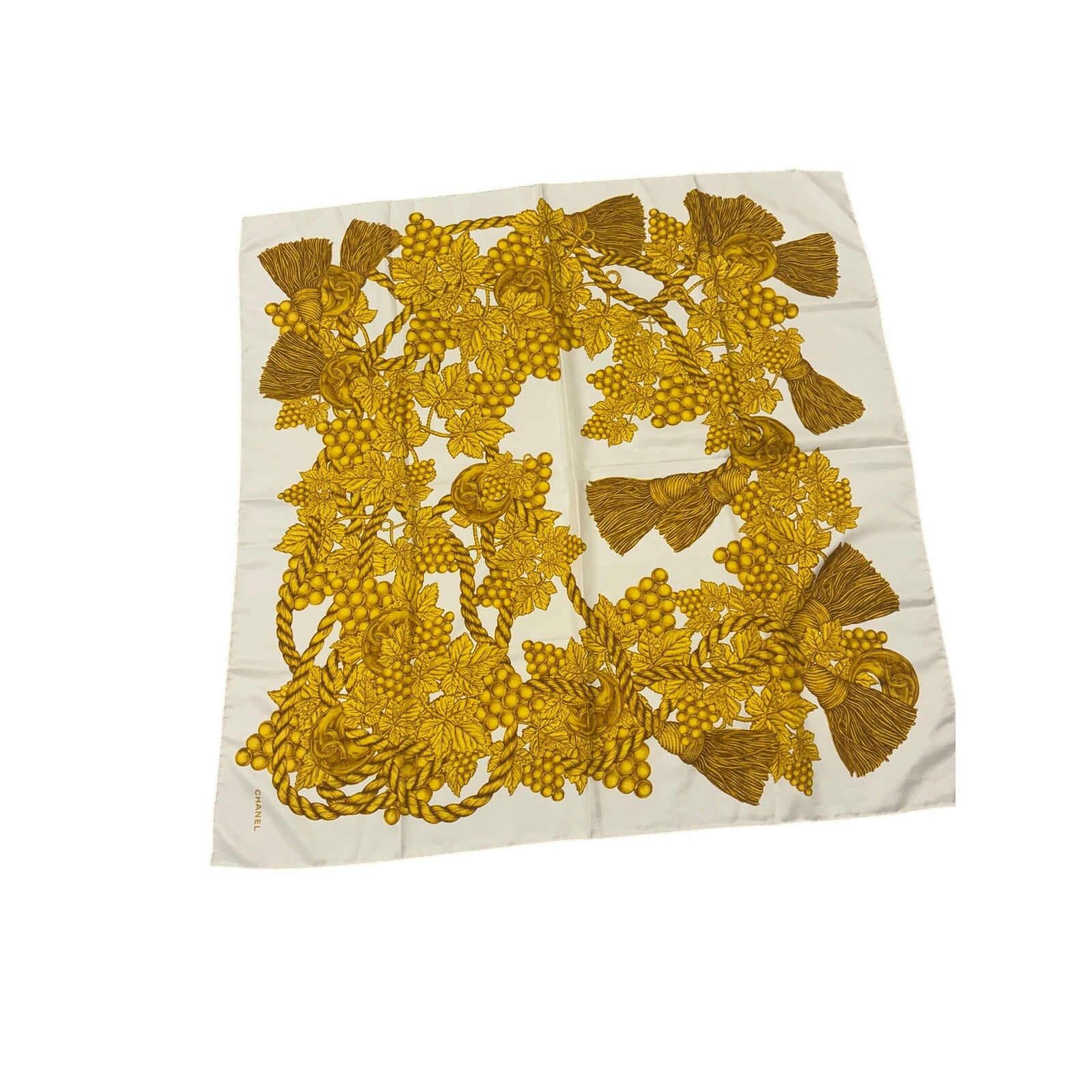 Chanel scarf ivory with gold leaf design. 100% silk. 90 x 90